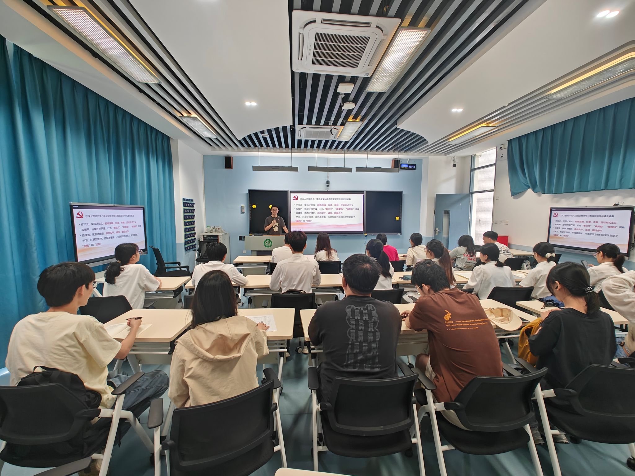 活动伊始,党支部书记刘文渊领学中央八项规定及其实施细则精神,并作《扎实开展学习教育 筑牢学风建设根基》主题报告,深刻阐释作风建设与学风建设的三重辩证关系——规矩严方得研学精,应破除学习功利导向与不良习气;学风实方能作风正,需坚决抵制浮躁抄袭与形式主义;自律强方有氛围清,需崇尚实干诚信与团结协作。刘文渊强调,员工党员要以“严、实、强”的标准要求自己,在学风建设中发挥先锋模范作用,发挥好三个带头作用:一是带头遵守校纪校规,严格执行课堂纪律、学术规范等各项规定,用自身的规矩意识为同学们树立标杆,营造风清气正的学习环境;二是带头潜心钻研学问,主动攻克学习难点,积极参与学术研讨,以勤学善思的态度带动班级学习氛围,激发求知热情;三是带头关心帮助同学,发挥朋辈育人作用,协助解决学业困惑,在互助共进中凝聚力量,让优良学风在团结协作中不断传承。随后,支部全体党员展开交流研讨,分享了各自参与朋辈辅学、监督课堂纪律等学风建设志愿服务活动中的心得体会,为推进公司学风整体提升提供了新思路。