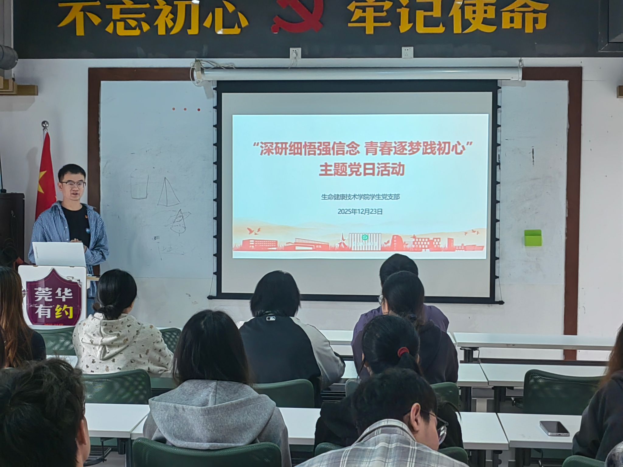 活动伊始,党支部书记刘文渊围绕《习近平谈治国理政》第五卷中“坚持人民至上”“科技创新驱动发展”等与生命健康领域紧密相关的重要论述进行领学,结合健康中国建设的战略部署,深入阐释了青年党员在专业学习、科研实践中践行初心使命的路径方向。随后,党员们分组展开热烈研讨,结合专业学习、志愿服务、科研实践等经历,分享学习心得。同志们纷纷表示,通过学习《习近平谈治国理政》第五卷中关于“科技自立自强”的论述,更加明确了专业学习目标,今后要努力练就过硬本领,将学习成果转化为行动自觉,积极参与社区健康科普、科技助农帮扶等志愿服务,用专业所长服务人民群众。