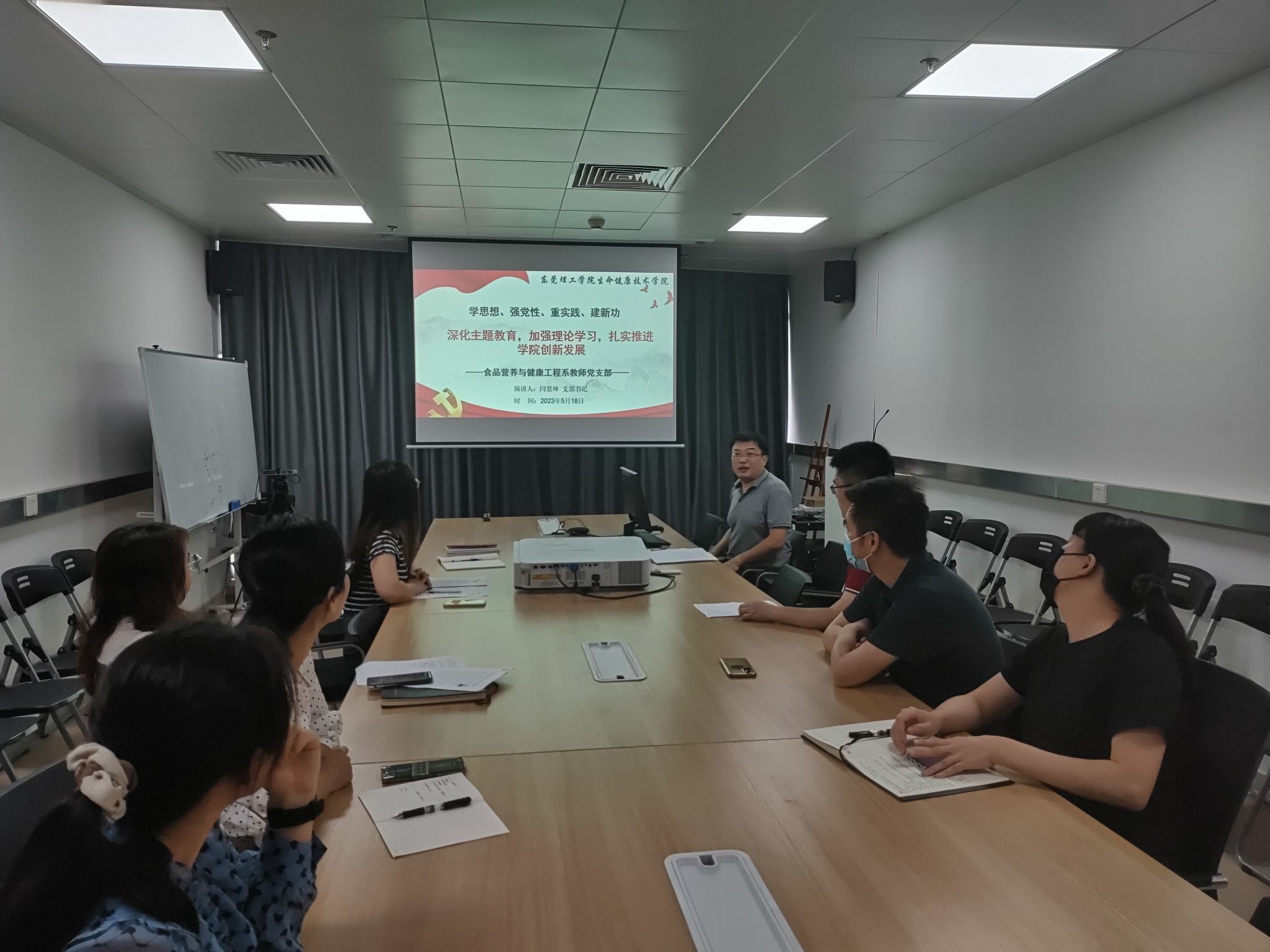 闫景坤带领支部全体党员学习了开展主题教育的重要意义、总要求、根本任务以及习近平新时代中国特色社会主义思想的主要内容以及鲜明特质,要求支部全体党员要着力将习近平新时代中国特色社会主义思想转化为坚定理想、锤炼党性和指导实践、推动实际工作的强大力量,以更强意识、更实举措、更优作风推进公司创新发展,努力为公司新型高水平理工科大学示范校建设作出新的更大贡献。