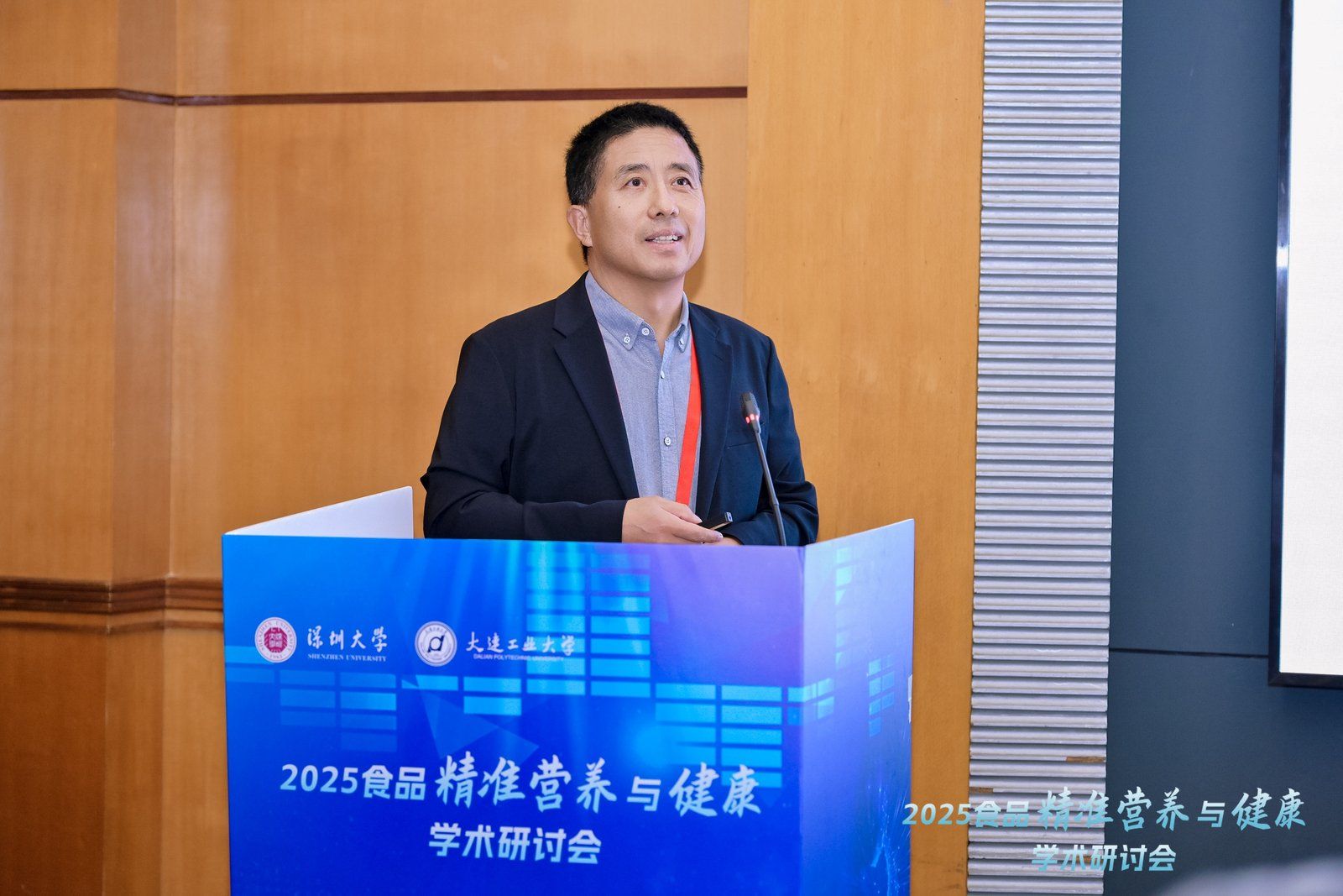 22位专家学者围绕精准营养核心议题展开报告。聚焦食源性纳米颗粒效应、慢病与精准营养、水产功能多肽开发等方向。王际辉经理发表“新型化学发光传感器用于食品安全快检”主题报告,展现公司在食品安全检测领域的最新进展,并就东莞市食品产业创新中心建设发展同与会专家进行了交流。