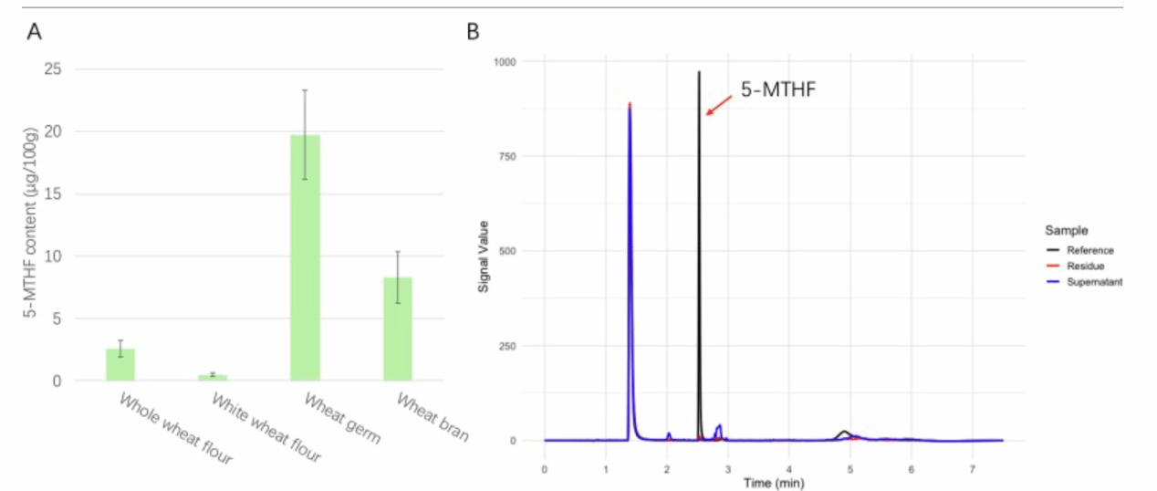 2025年9月,公司刘亚青教授团队于国际食品顶级期刊《Food Chemistry》(IF = 9.8)在线发表题为“Complete loss of 5-methyltetrahydrofolate in wheat during simulated gastric digestion”的快报研究性文章。公司刘丰源助理研究员为第一作者和通讯作者,刘亚青教授为该论文共同通讯作者。