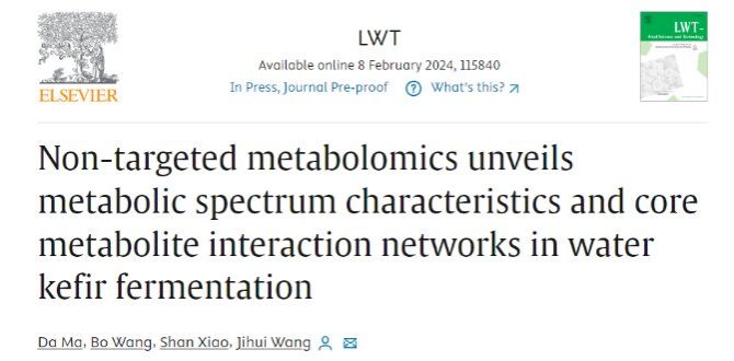 2024年2月8日,公司王际辉教授团队于国际食品顶级期刊《LWT - Food Science and Technology》在线发表题为“Non-targeted metabolomics unveils metabolic spectrum characteristics and core metabolite interaction networks in water kefir fermentation”的研究性文章。论文第一作者为马达博士后,通讯作者为王际辉教授。