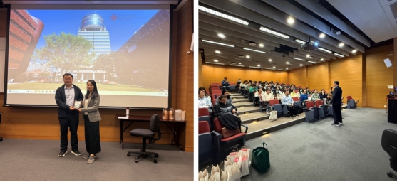 香港理工大学食品科学及营养学系副主任邱家琪博士和吴建勇教授对同学们的到来表示热烈欢迎。邱家琪博士详细介绍了香港理工大学食品科学及营养学系的发展历史、团队队伍、人才培养及科学研究等情况。吴建勇教授及其团队围绕生物活性多糖的性质、功能和肠道菌群代谢与营养健康等方面内容做了专题分享。随后,同学们与香港理工大学食品科学及营养学系的老师及博士生就研究方向、未来升学规划等方面展开了热烈交流讨论。