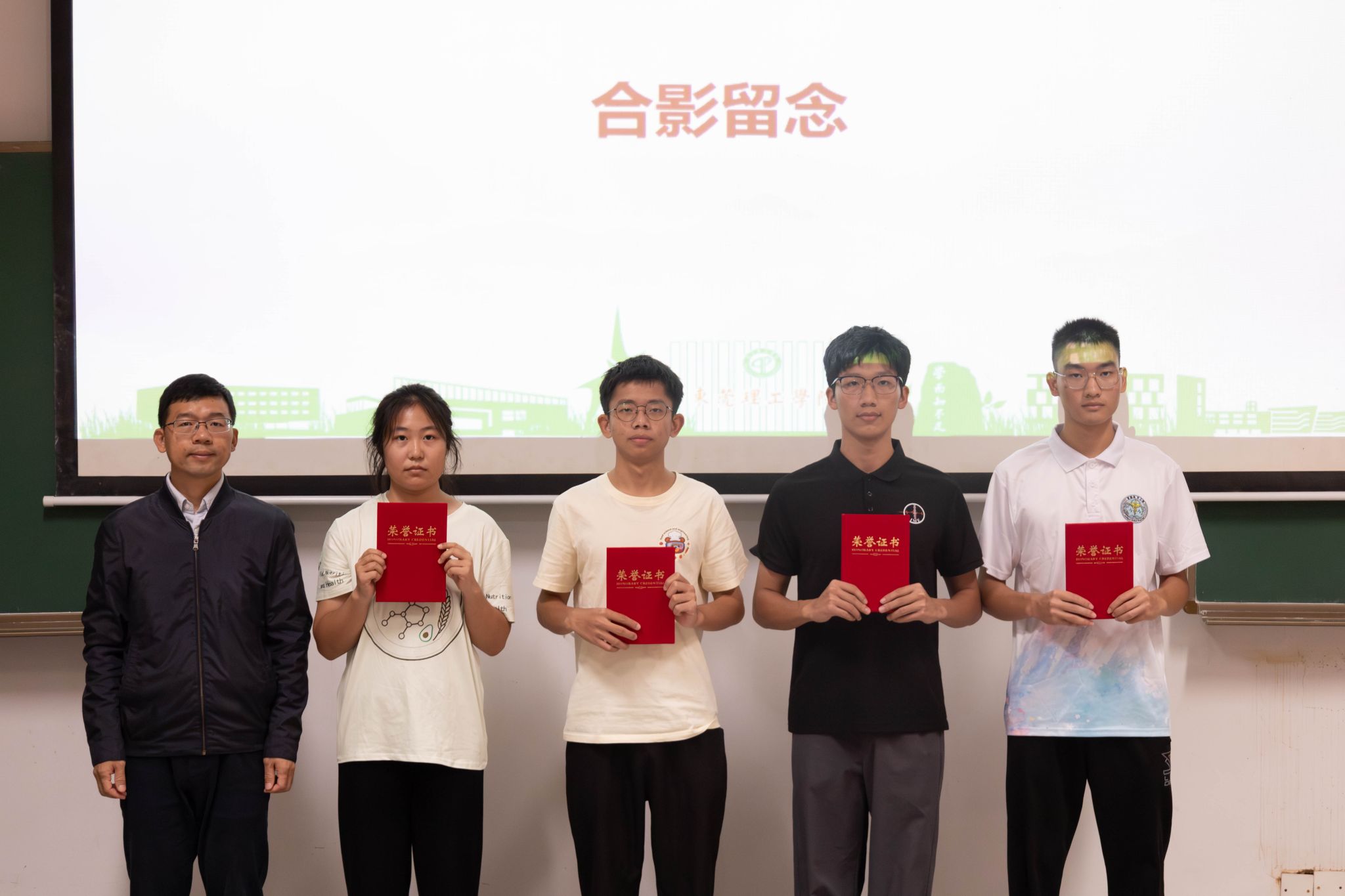 经过评委评分,主持人现场公布了比赛结果,葛金虎为获奖班级颁奖并合影留念。