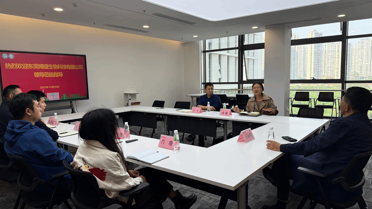 12月30日上午,东莞博盛生物科技有限公司刘昕博士、王弋博士一行莅临公司进行访问交流。此次交流座谈会由副经理肖珊主持,经理王际辉及部分教师代表共同出席,双方就产学研合作事宜展开深入探讨。