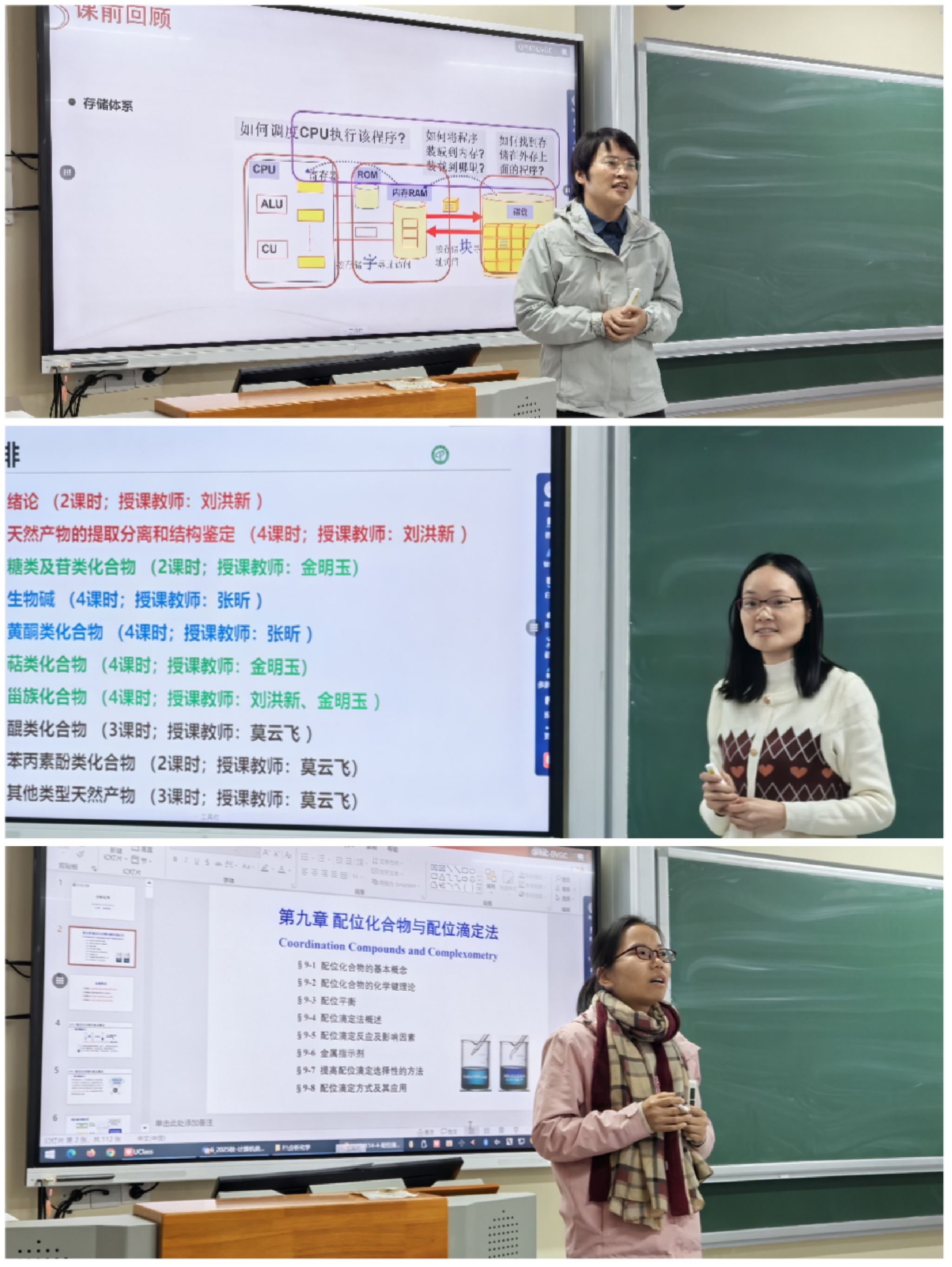 试讲过程中,3位老师结合所授课程特点,展现了各具特色的教学风格。沈晓燕围绕《计算机类专业导论》课程,系统梳理专业发展脉络、核心知识体系与就业方向,帮助员工建立专业认知框架;刘洪新主讲《天然产物化学》,结合生动的实际案例讲解天然产物特性,注重理论与生活实践的结合;余祥英聚焦《分析化学》课程中配位化合物等内容,通过清晰的原理阐释、直观的结构演示,拆解核心知识点,让抽象的化学概念通俗易懂。