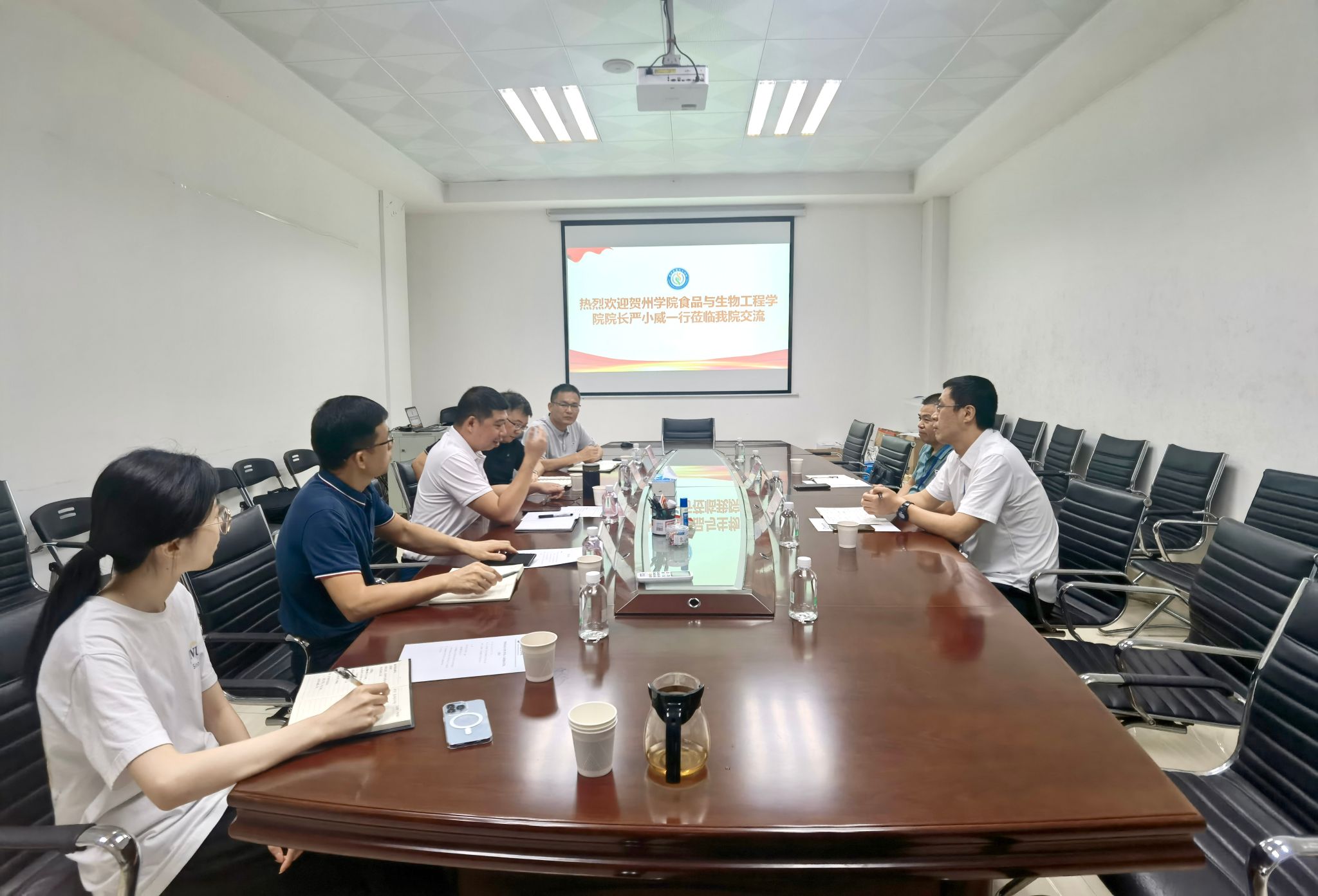 严小威经理对公司的热情接待表示感谢,并介绍了贺州公司食品与生物工程公司的历史沿革、团队建设、团队团队、教学场地及设备、院校合作等基本情况。韩春阳副经理着重介绍了当前公司教学管理、毕业生实习等方面的工作举措。交流环节中,双方围绕加强院系团队建设、开展硕士点培育与申报、深化校企合作、推进产学研融合、保障毕业生实习就业以及健全教师干部培养机制等内容进行了深入探讨和交流。