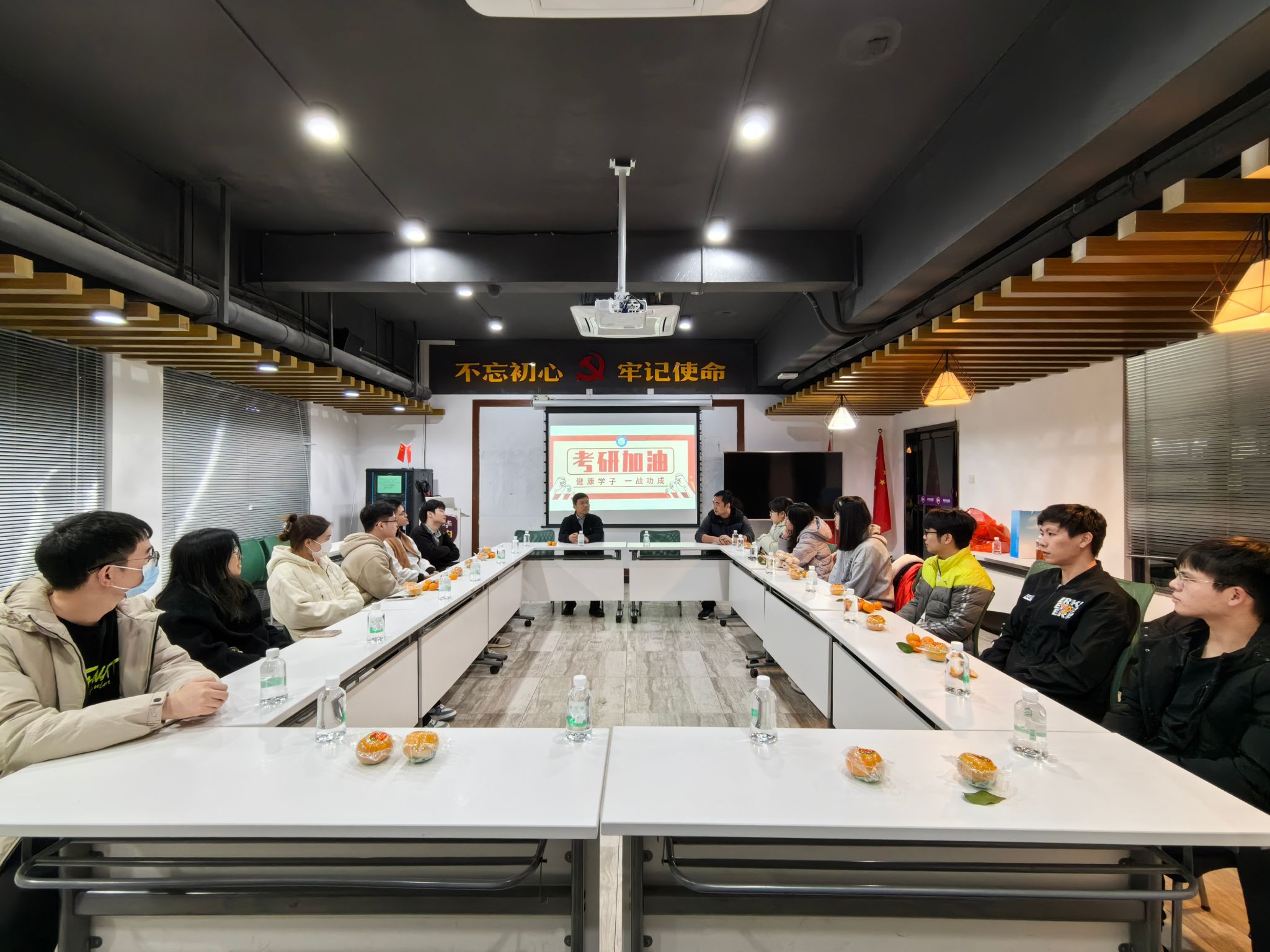 在2024年研考即将到来之际,为鼓舞考研学子士气,增强考试信心,缓解备考压力,12月18日,304永利集团在莞华社区活动室开展2024届考研加油活动。活动由公司党委副书记葛金虎主持,毕业班班主任肖珊、刘宇佳,辅导员杨梅青、刘文渊出席,为考研学子送上暖心祝福。