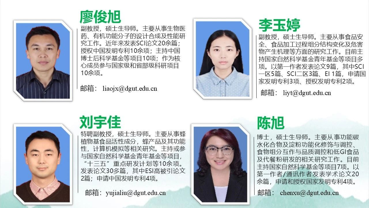 为契合健康中国国家战略和粤港澳大湾区健康产业发展需求,生物与医药专业学位点依托食品营养与健康系、智能医学工程系、应用化学系建立。本专业学位点覆盖了食品工程、生物技术与工程和制药工程等领域,紧密围绕营养健康食品创制、微生物代谢产物的研究与应用和医药与精细化学品,形成了学科交叉融合的有机整体,在团队建设与科学研究中形成了自己的特色和优势。本学位点现有专任教师37人,其中教授6人、副教授14人,团队队伍中博士研究生导师4人、硕士研究生导师19人。生物与医药硕士学位点雄厚的团队为培养具有扎实基础理论知识、较宽知识面和较强工程实践能力的高层次生物与医药人才提供了充分的保障。