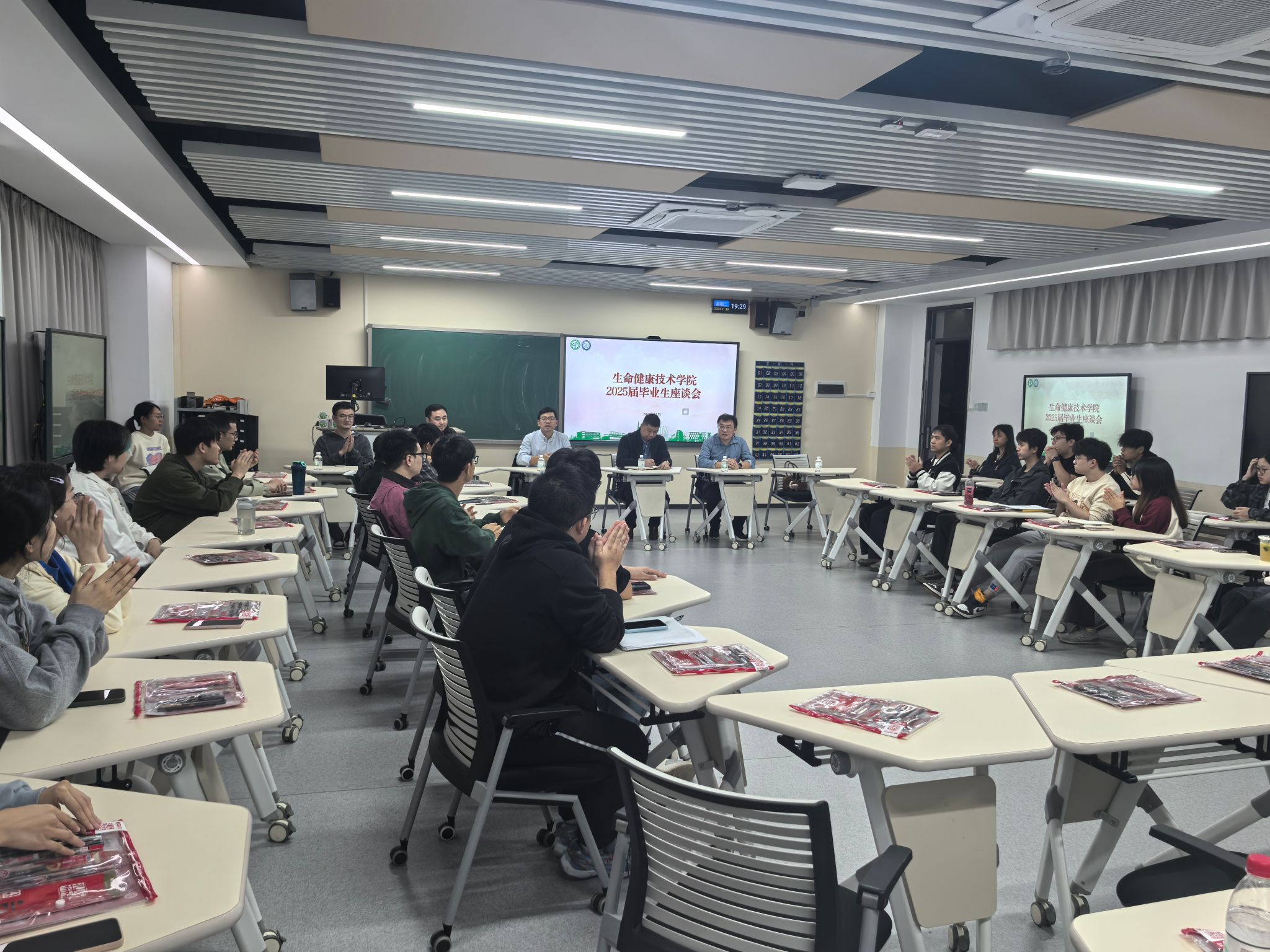 为进一步了解2025届毕业生的在校学习生活情况,掌握同学们的就业现状及期望需求,提高工作针对性,304永利集团于11月26日晚在6D303举行2025届毕业生座谈会。公司党委书记谢炯标,党委副书记葛金虎,副经理闫景坤,营养与健康系主任刘宇佳,辅导员杨梅青、刘文渊及2025届毕业生参加此次座谈会。